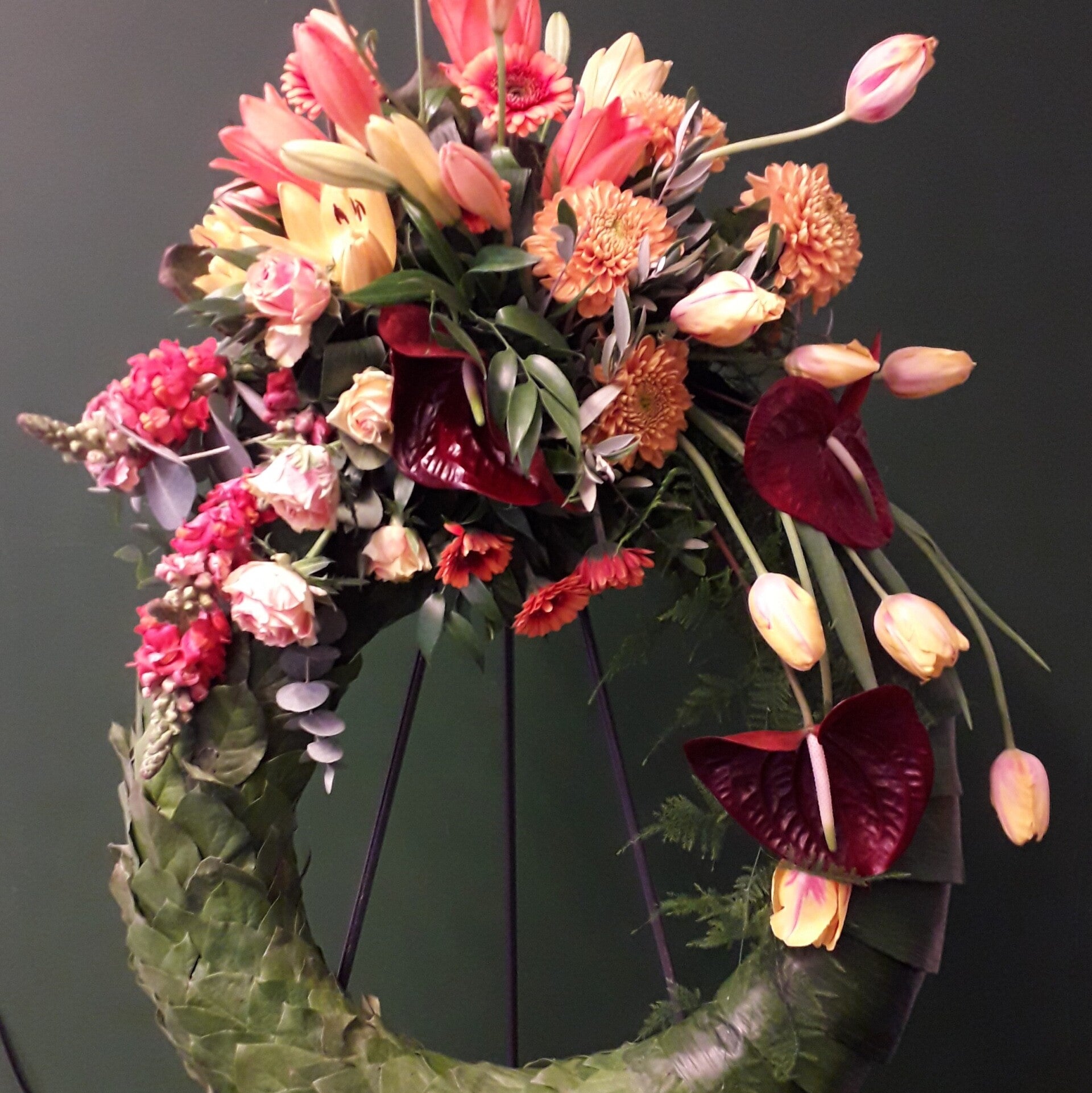 Bloemen zijn een natuurproduct,en soorten zijn niet altijd verkrijgbaar. Bij het samenstellen van de bloemsoorten voor uw arrangement wordt zoveel mogelijk gebruik gemaakt van seizoensmaterialen. De geleverde arrangementen zijn hierdoor altijd uniek maar komen qua vorm en kleur overeen met de afbeelding.