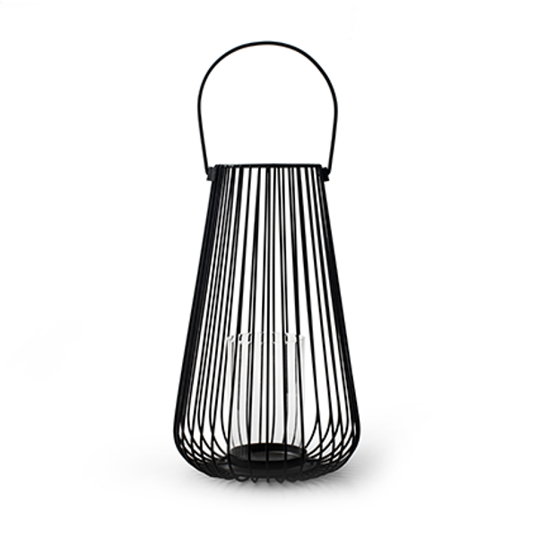 Prachtige zwarte draadlantaarn van metaal met een beschermglas voor een stompkaars. Verkrijgebaar in: